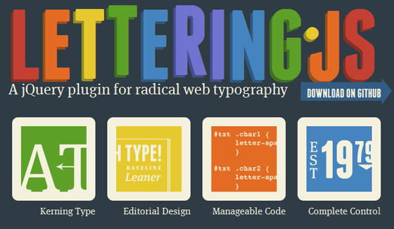 Lettering.js是一个轻量经的、易于使用的jQuery插件,可创造出极具个性的网页排版,是2010年最佳jQuery插件之一。