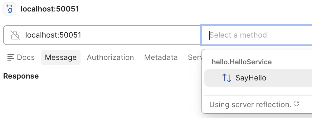 Error invoking method "hello.HelloService/SayHello": failed to query for service descriptor "hello.HelloService": server does not support the reflection API