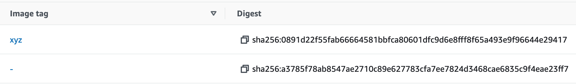 第一反应是查看 Task Definition 中关联的 123456789012.dkr.ecr.us-east-1.amazonaws.com/demo:latest 还在不在,明明存在啊,为什么还会找不到 Docker Image 呢?再仔细看后面还挂了一个 @sha256:ff0b2bbabd0147f23a4b4b499175a2aadf4b775285ea4cfdeb7b30fa3af4bdb8 Image 的 Hash 摘要,这才是关键。