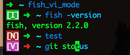 或者在 ~/.config/fish/config.fish 中加上 fish_vi_mode 便自动进入 vi 模式。