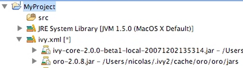 前面都是用 XML 来配置的,虽说 XML 的标签描述性也很强,但阅读性还是有些牵强,并且 Maven 和 Ant+Ivy 都需要 IDE 的支持,比如在 Eclipse 中有专门 Maven Dependencies 或 ivy.xml [*] 中列出项目的依赖包,这里常会出现些问题。