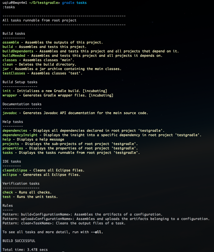 用 gradle tasks 可列出所有可用的 Task