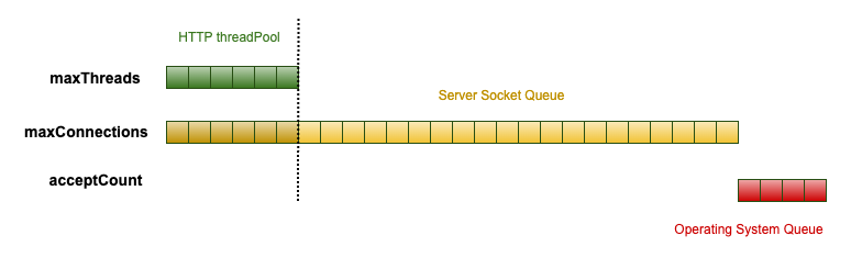 server.tomcat.threads.max=20 server.tomcat.max-connections=22 server.tomcat.accept-count=3 |