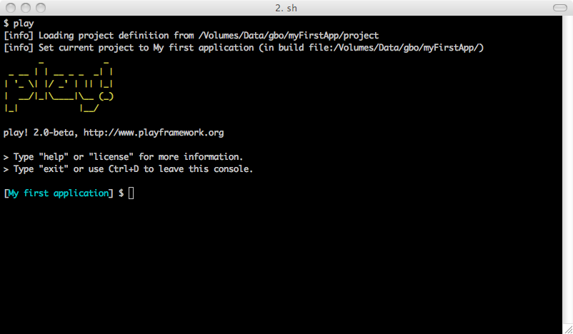 play 命令进入到当前应用的控制台下,提示符是 [应用的名称] $