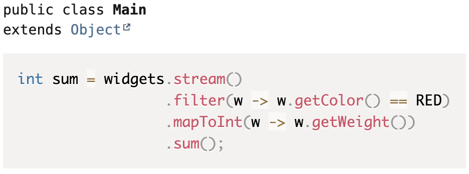 用命令 javadoc *.java 生成的 HTML 中形成代码块, 但还不能真正称作语法高亮