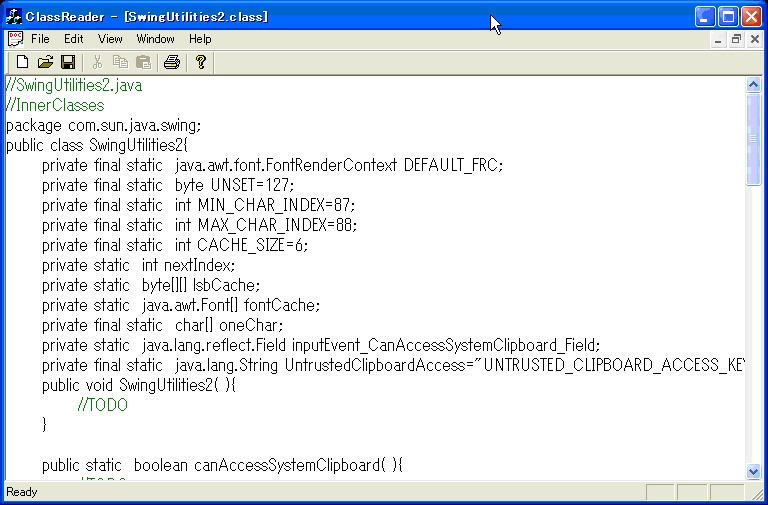 将获得的Java源代码显示在MFC的CScrollView视图非常简单,可以添加一些关键字颜色,例如注释显示为草绿色等,如图4。