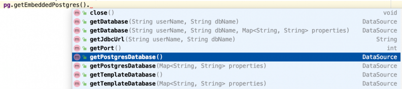 5 postgres = new EmbeddedPostgres(Version.V11_1/*, "/path/to/predefined/data/directory"*/);