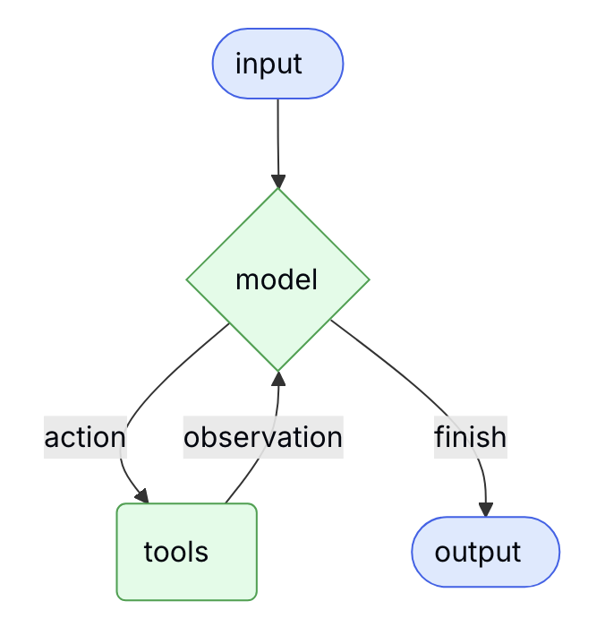 LangGraph 把与模型,工具,以及人的交互做成一个图还是很表意的,下面是来源于官方文档的表示 Agent 的状态图。