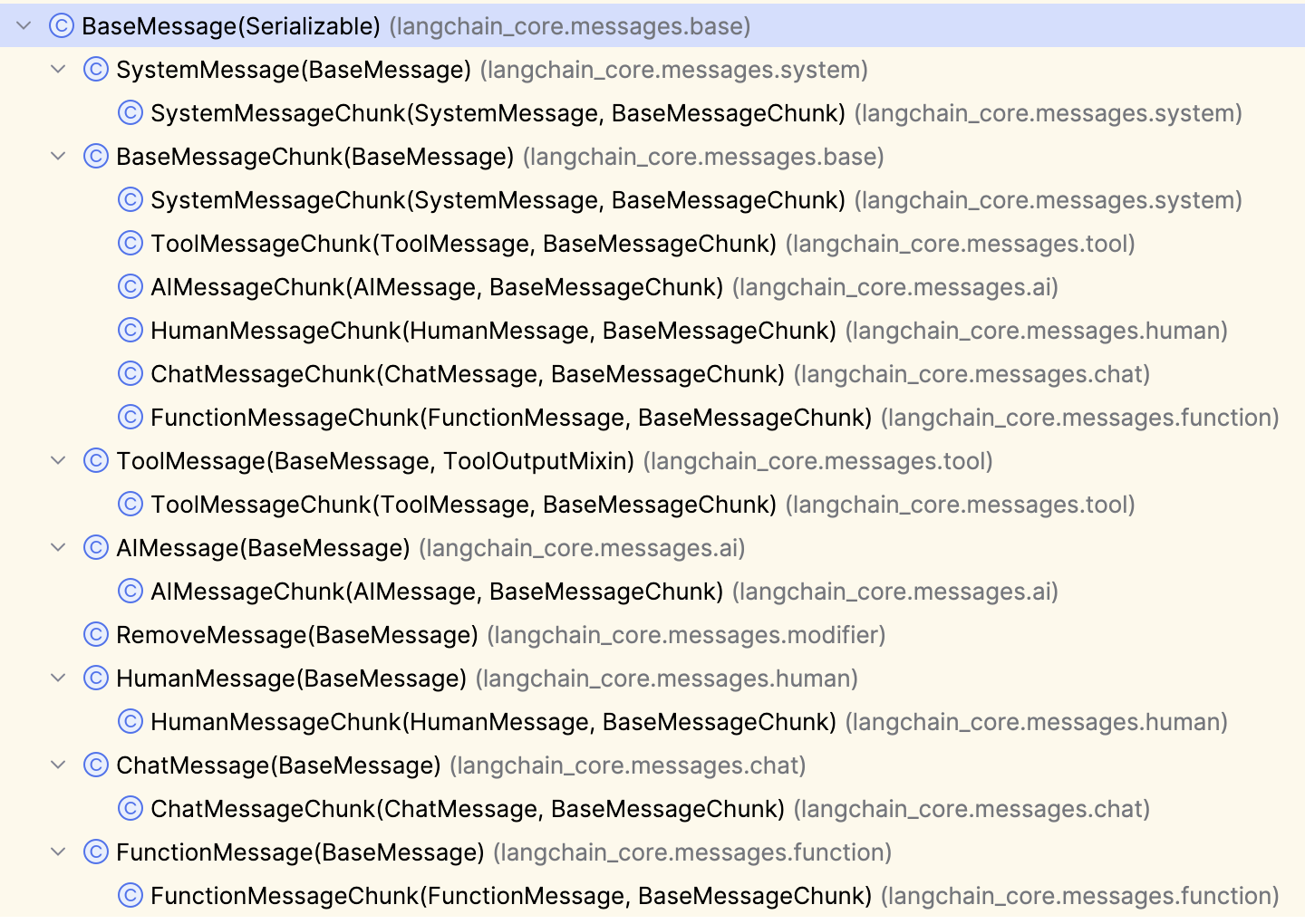 AIMessage 中需要调用 tool 时的消息格式,不在本文研究范围内,LangChain 有专门一章讲 Tools 的,到时再详述。