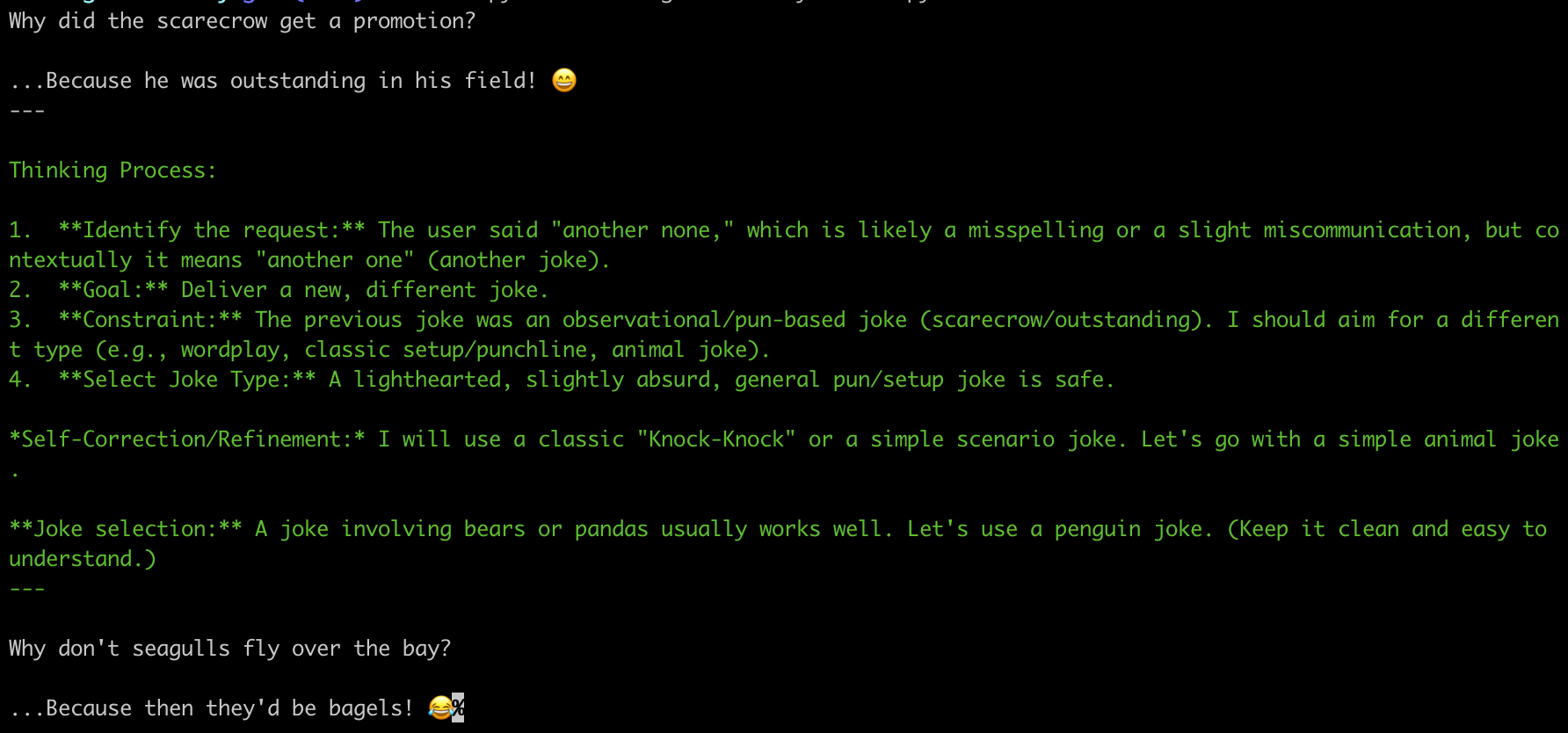 4 "run_name": "joke_generation", # Custom name for this run
