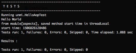 clients 模块,命令行下执行mvn exec:java -Dexec.mainClass="cc.unmi.HelloAop"能得到同样的执行结果