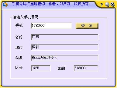 本软件定名为:手机号码归属地查询(俗),英文名:Mobile Locator(名不符实),可查130-139及159段手机号码,数据我将会持续更新。绿色安装,不含任何恶意代码,解压执行 MobileLocator.exe 即可,运行时查询效率很高,占用内存不大,启动后 5M 疯狂点查询按钮最大占用内存也只是 7M,没有内存溢出。