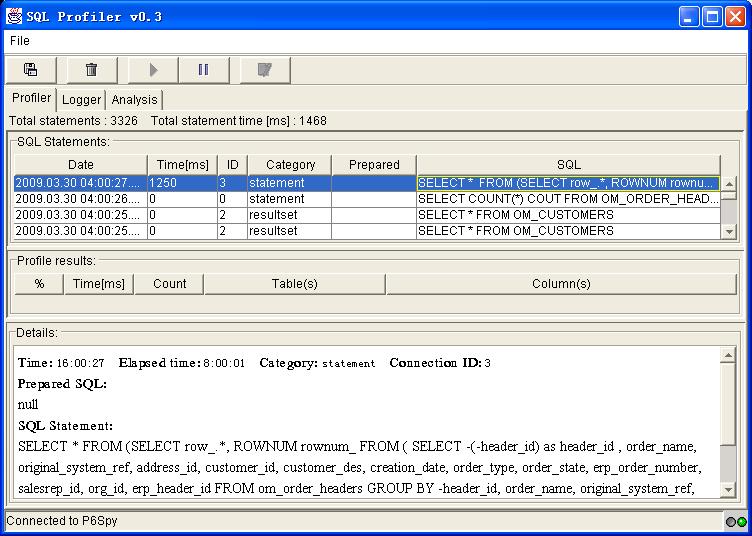 不过还有种更专业做法,本篇将介绍 p6spy 如何结合 Sql Profiler 或 IronTrack SQL 来使用,并附以贴图,来感受一下吧。也以此来完成关于 p6spy 的这个系列。 其实你到后面也会发现,即便是用 Sql Pofier 的实现过程也是借助了 Log4j 的 SocketApender,你可以从它自己带的 p6spy.properties 文件中的配置看出来, 即其中的 log4j.appender.SQLPROFILER_CLIENT=org.apache.log4j.net.SocketAppender 这么一个配置。