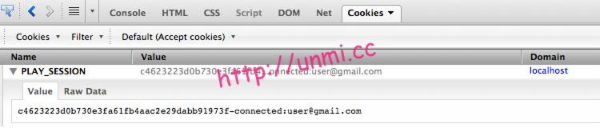 看一下 Play 存储的会话在 Cookie 中的样子: