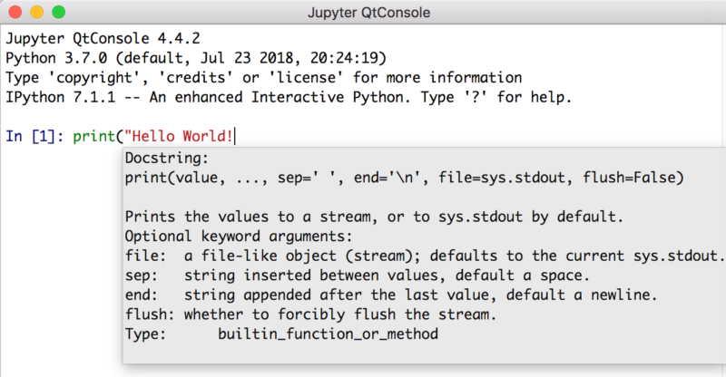 Jupyter QtConsole 除拥有 ipython 所有功能外,在智能提上有所增强,已经显现出 IDE 的雏形