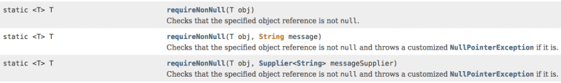 JDK 7 引入了 Objects 工具类,它的三个T requireNotNull(T object)方法能对参数进行 null 值检查,null 时抛出NullPointerException