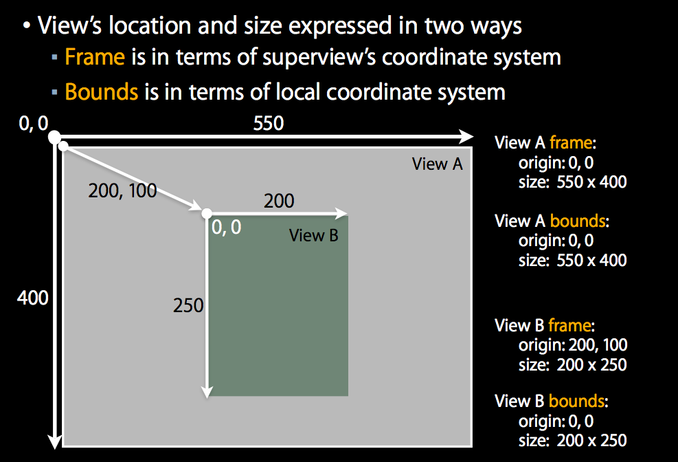 frame和bounds是UIView中的两个属性(property)。