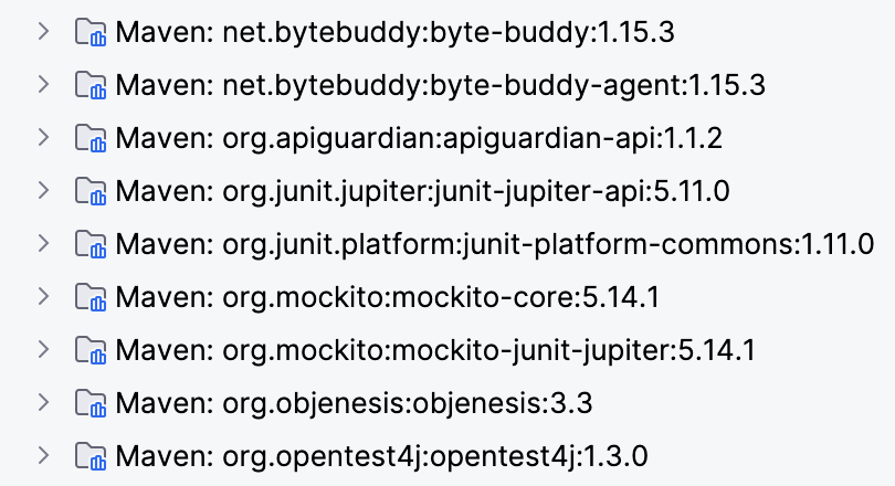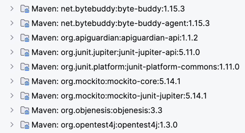 首先回顾一下 Mockito 的静态方法 Mock 的使用方法,随着 Mockito 版本的升级,引入依赖的方式也发生了些许的变化,以 Maven 项目为例,如果在 JUnit 5 下用 Mockito 的 pom.xml 依赖中为1<dependency> 2 <groupId>org.mockito</groupId> 3 <artifactId>mockito-junit-jupiter</artifactId> 4 <version>5.14.1</version> 5 <scope>test</scope> 6</dependency>