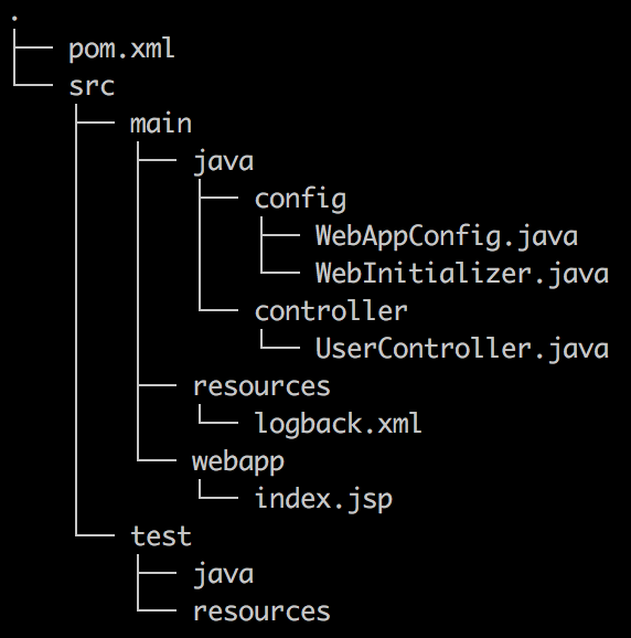 本文侧重于 Spring MVC 项目提供 RESTful JSON API, 因而静态 Web 内容提及较少。创建一个 Maven 项目的方式,可以直接创建一个pom.xml文件,然后编辑它的内容,使用 IntelliJ IDEA 的话只需要选择导入为一个 Maven 项目就成,Eclipse 的话可能还要事先运行mvn eclipse:eclipse初始化一下。项目结构布局