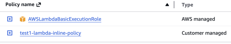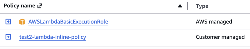 10➜ ~ aws iam list-attached-role-policies --role-name test2-lambda-role