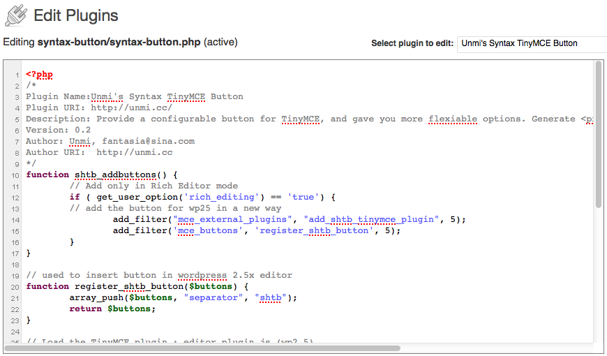 安装完启用后,使能看到编辑插件/主题时的代码都高亮了,使代码的可读性大大增加,编辑时即时的效果,能让你修改代码时出错的几率明显降低。