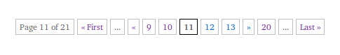 像其他分页插件还有 pagebar,以及 jQuery 版的 jQuery Pagebar,这个应该也还不错 Zamango Page Navigation。还是看看它们各个长什么样。
